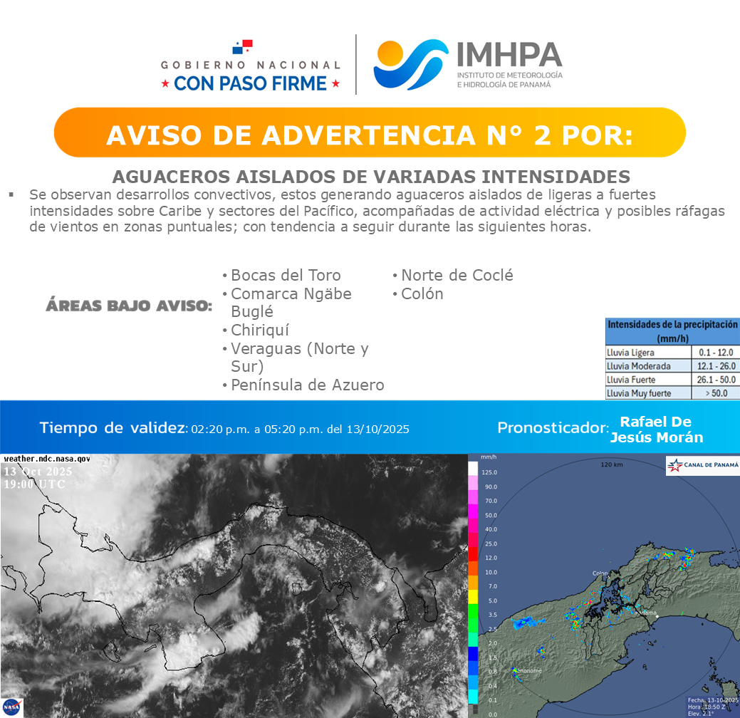 Por mandato de lo establecido en la Ley No. 209 del 22 de abril de 2021, se pone a disposición de los interesados la información contenida en este sitio, para su utilización por cualquier medio legal, pero su uso deberá citar la fuente: INSTITUTO DE METEOROLOGÍA E HIDROLOGÍA DE PANAMÁ, (IMHPA). El instituto, no se hace responsable de ningún error, omisión, interpretación, pérdidas o daños que resulten de la utilización de la información o material contenidos en este sitio, por parte de usuarios, visitantes o terceras personas y su uso indebido y sin confirmar, estará sujeto a sanciones penales (Artículos 289, 290 y 291 del Código Penal) y/o administrativas. Además, en algunos casos que les sea aplicable, dicha información puede ser actualizada por el IMHPA, para corregir errores o imprecisiones