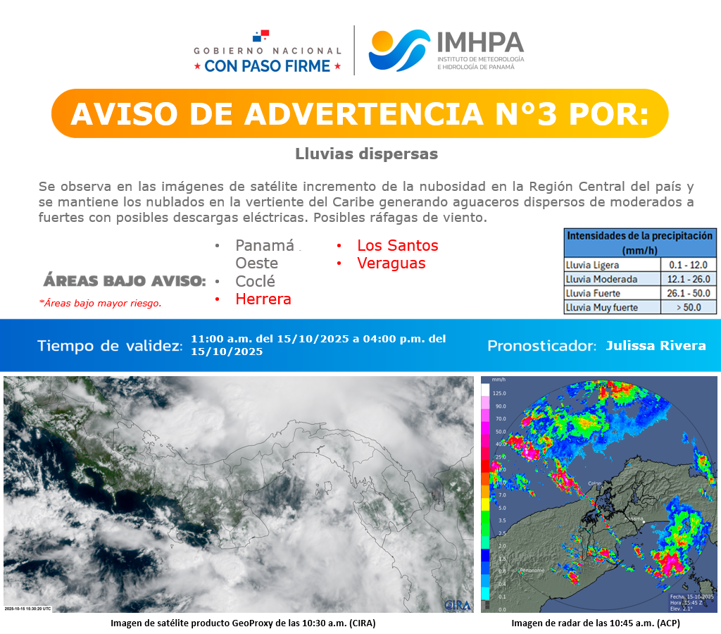 Por mandato de lo establecido en la Ley No. 209 del 22 de abril de 2021, se pone a disposición de los interesados la información contenida en este sitio, para su utilización por cualquier medio legal, pero su uso deberá citar la fuente: INSTITUTO DE METEOROLOGÍA E HIDROLOGÍA DE PANAMÁ, (IMHPA). El instituto, no se hace responsable de ningún error, omisión, interpretación, pérdidas o daños que resulten de la utilización de la información o material contenidos en este sitio, por parte de usuarios, visitantes o terceras personas y su uso indebido y sin confirmar, estará sujeto a sanciones penales (Artículos 289, 290 y 291 del Código Penal) y/o administrativas. Además, en algunos casos que les sea aplicable, dicha información puede ser actualizada por el IMHPA, para corregir errores o imprecisiones