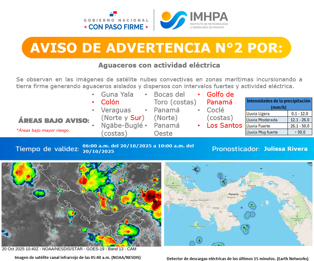 Por mandato de lo establecido en la Ley No. 209 del 22 de abril de 2021, se pone a disposición de los interesados la información contenida en este sitio, para su utilización por cualquier medio legal, pero su uso deberá citar la fuente: INSTITUTO DE METEOROLOGÍA E HIDROLOGÍA DE PANAMÁ, (IMHPA). El instituto, no se hace responsable de ningún error, omisión, interpretación, pérdidas o daños que resulten de la utilización de la información o material contenidos en este sitio, por parte de usuarios, visitantes o terceras personas y su uso indebido y sin confirmar, estará sujeto a sanciones penales (Artículos 289, 290 y 291 del Código Penal) y/o administrativas. Además, en algunos casos que les sea aplicable, dicha información puede ser actualizada por el IMHPA, para corregir errores o imprecisiones