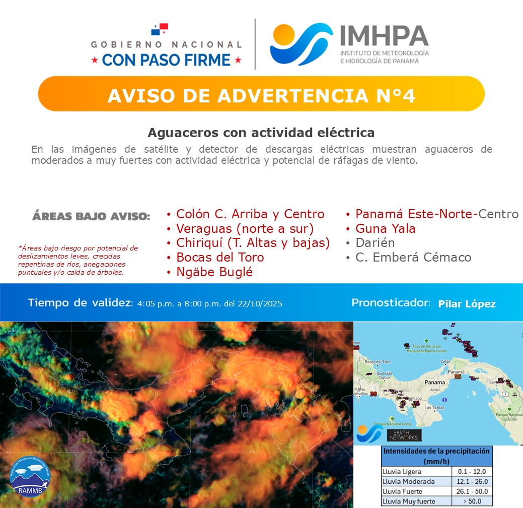 Por mandato de lo establecido en la Ley No. 209 del 22 de abril de 2021, se pone a disposición de los interesados la información contenida en este sitio, para su utilización por cualquier medio legal, pero su uso deberá citar la fuente: INSTITUTO DE METEOROLOGÍA E HIDROLOGÍA DE PANAMÁ, (IMHPA). El instituto, no se hace responsable de ningún error, omisión, interpretación, pérdidas o daños que resulten de la utilización de la información o material contenidos en este sitio, por parte de usuarios, visitantes o terceras personas y su uso indebido y sin confirmar, estará sujeto a sanciones penales (Artículos 289, 290 y 291 del Código Penal) y/o administrativas. Además, en algunos casos que les sea aplicable, dicha información puede ser actualizada por el IMHPA, para corregir errores o imprecisiones