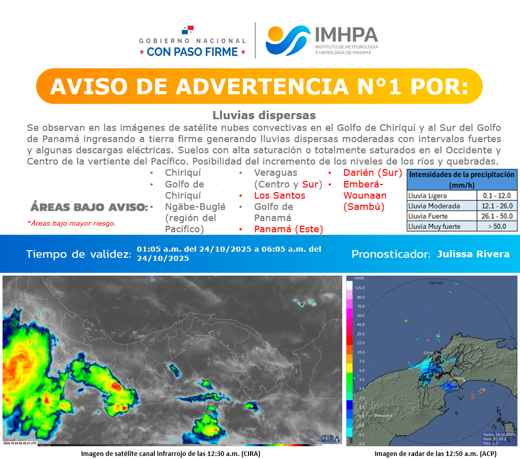 Por mandato de lo establecido en la Ley No. 209 del 22 de abril de 2021, se pone a disposición de los interesados la información contenida en este sitio, para su utilización por cualquier medio legal, pero su uso deberá citar la fuente: INSTITUTO DE METEOROLOGÍA E HIDROLOGÍA DE PANAMÁ, (IMHPA). El instituto, no se hace responsable de ningún error, omisión, interpretación, pérdidas o daños que resulten de la utilización de la información o material contenidos en este sitio, por parte de usuarios, visitantes o terceras personas y su uso indebido y sin confirmar, estará sujeto a sanciones penales (Artículos 289, 290 y 291 del Código Penal) y/o administrativas. Además, en algunos casos que les sea aplicable, dicha información puede ser actualizada por el IMHPA, para corregir errores o imprecisiones